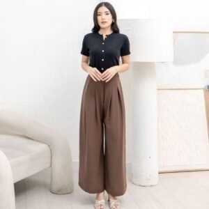 Celana panjang kulot wanita ini menampilkan gaya Korea yang modern. Cocok untuk berbagai acara, celana ini memberikan tampilan yang stylish. Desainnya yang oversized membuatnya nyaman dipakai sepanjang hari. Cocok untuk Anda yang mencari celana dengan sentuhan fashion.